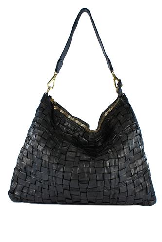 Monospalla Carla Pelle Intrecciata Nera Edera