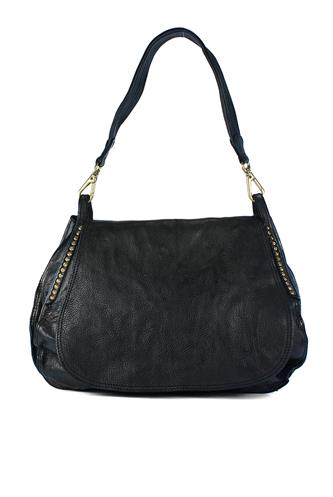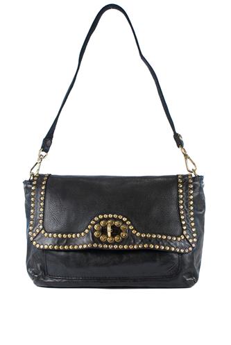 Borsa a Spalla Nadia Pelle Nera Borchie Ametista