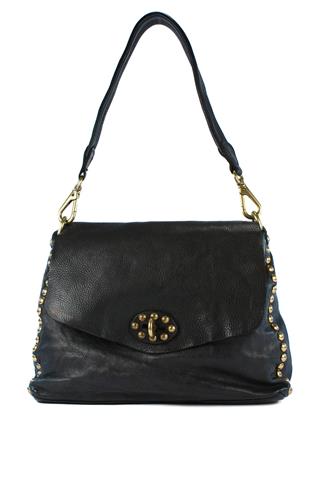 Monospalla Enza Grande Kura Pelle Nera Borchie
