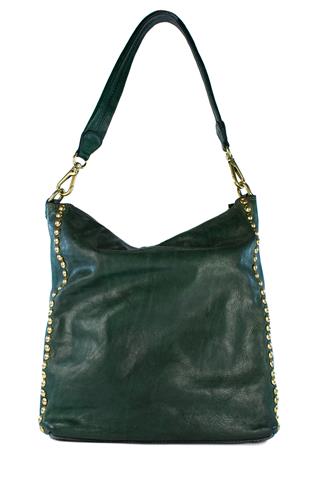 Borsa a Spalla Lisa Pelle Verde Bottiglia Borchie Ametista